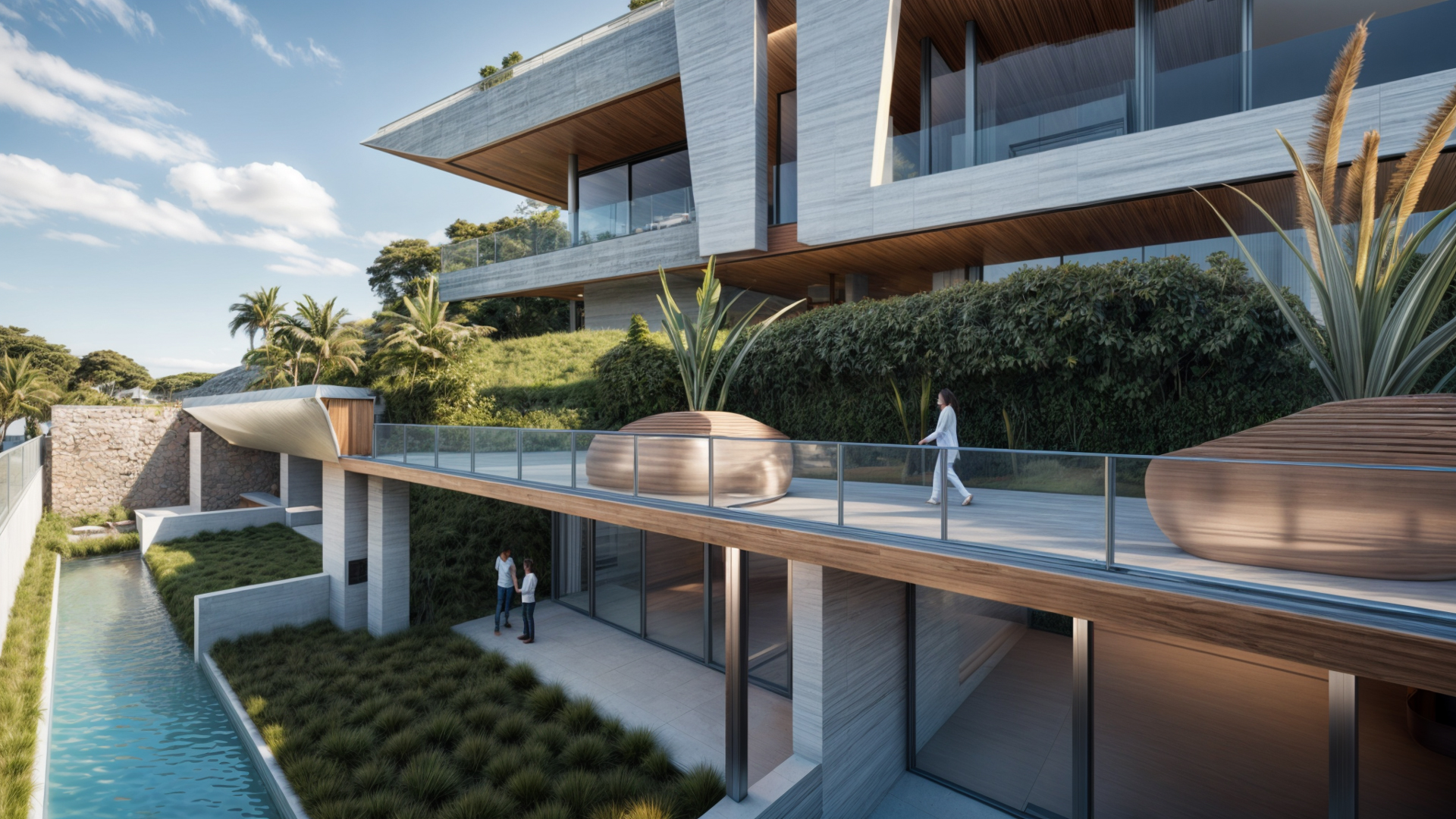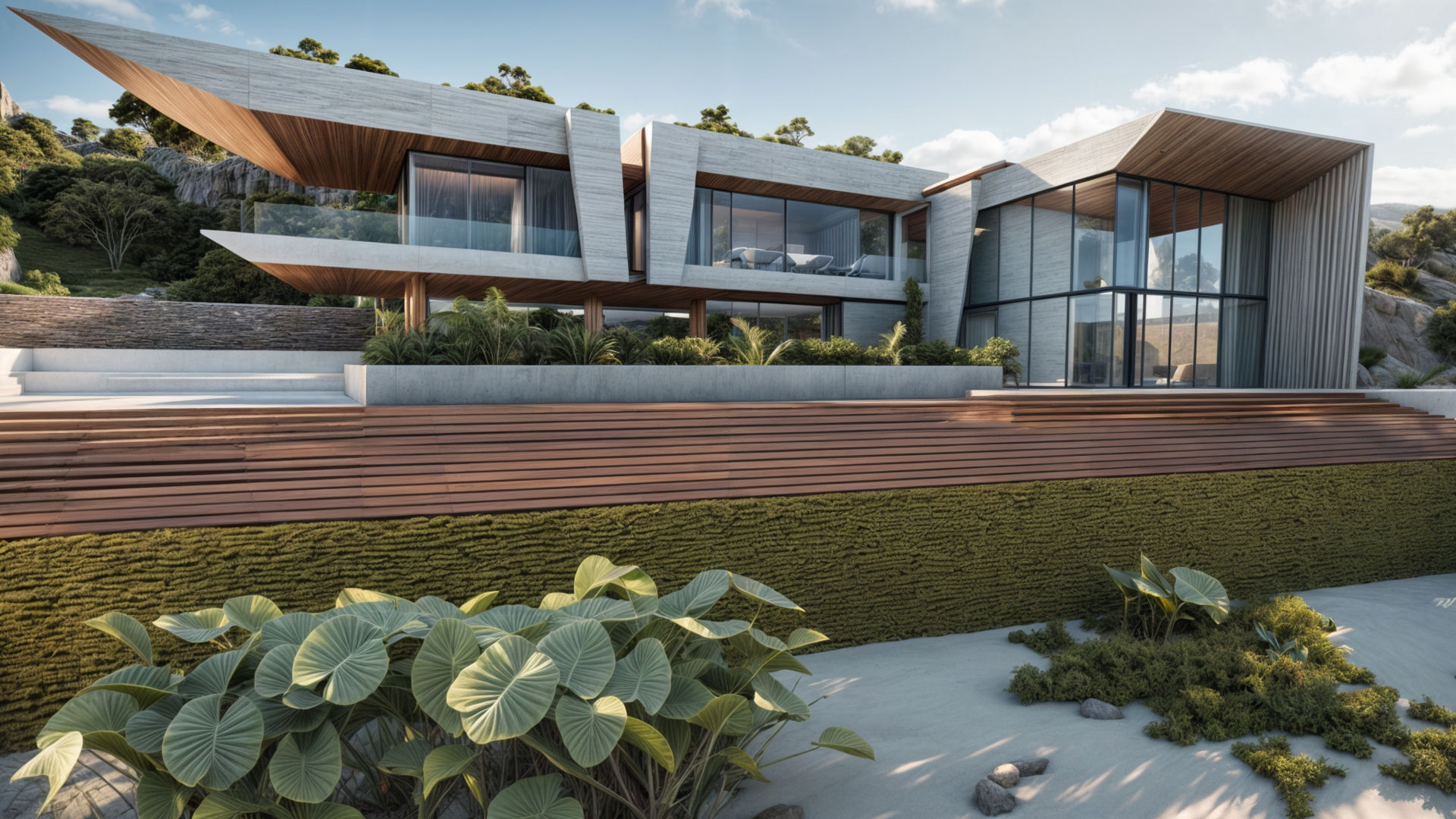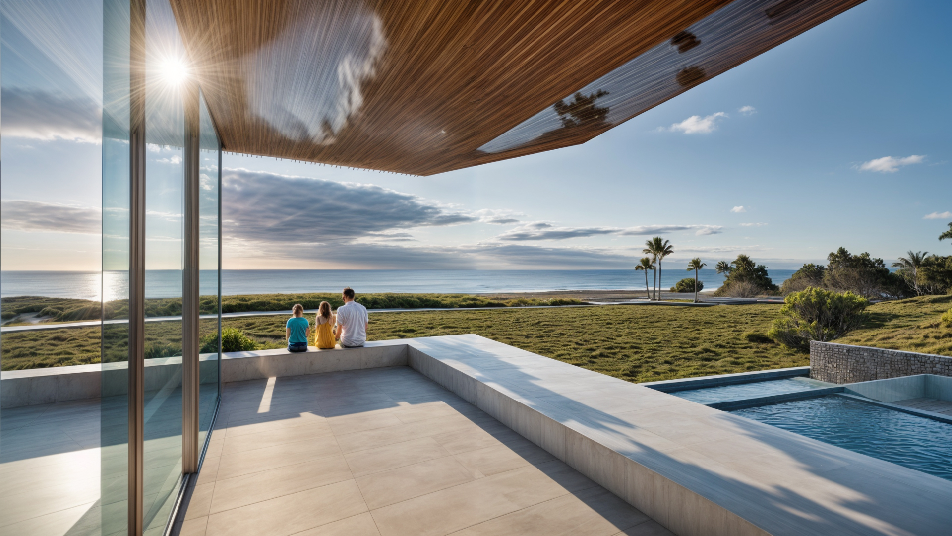Con un diseño contemporáneo que respeta la belleza natural del entorno, la casa se caracteriza por sus grandes cristaleras, que no solo llenan de luz natural los espacios interiores, sino que también ofrecen vistas panorámicas al océano y al paisaje circundante.
