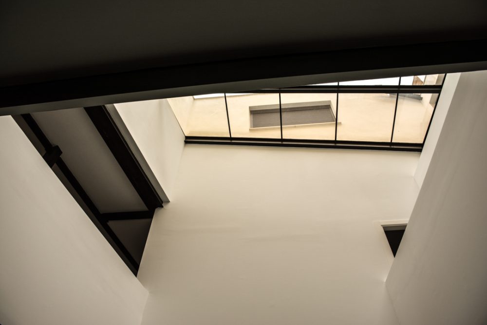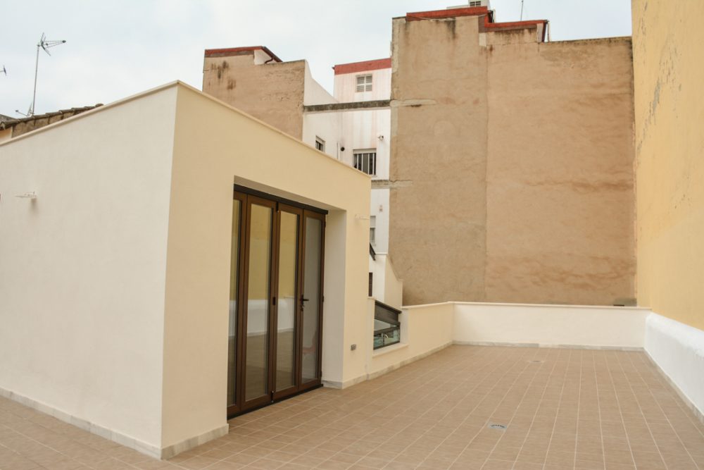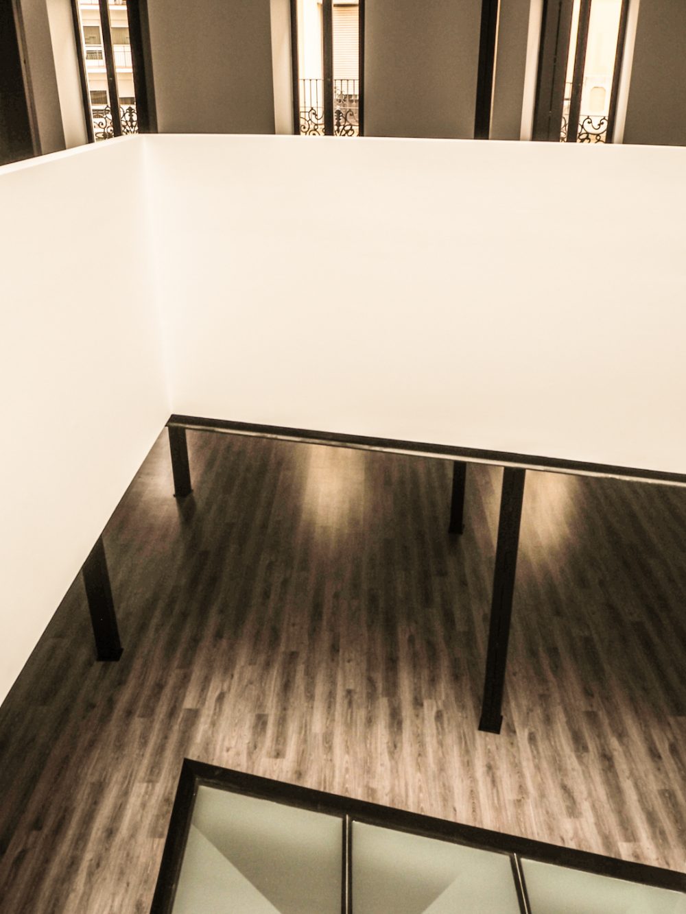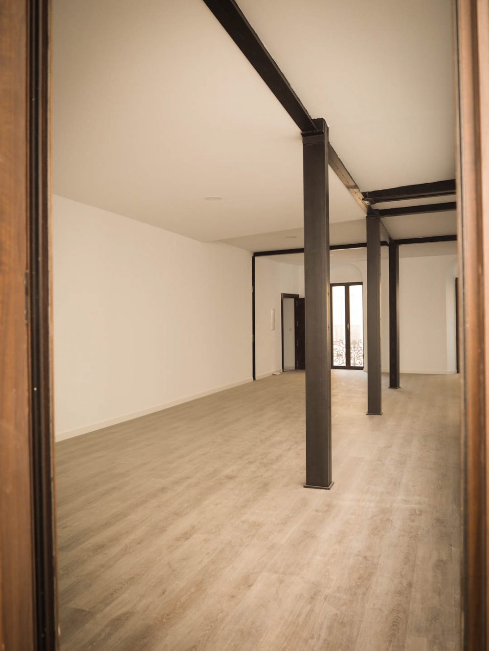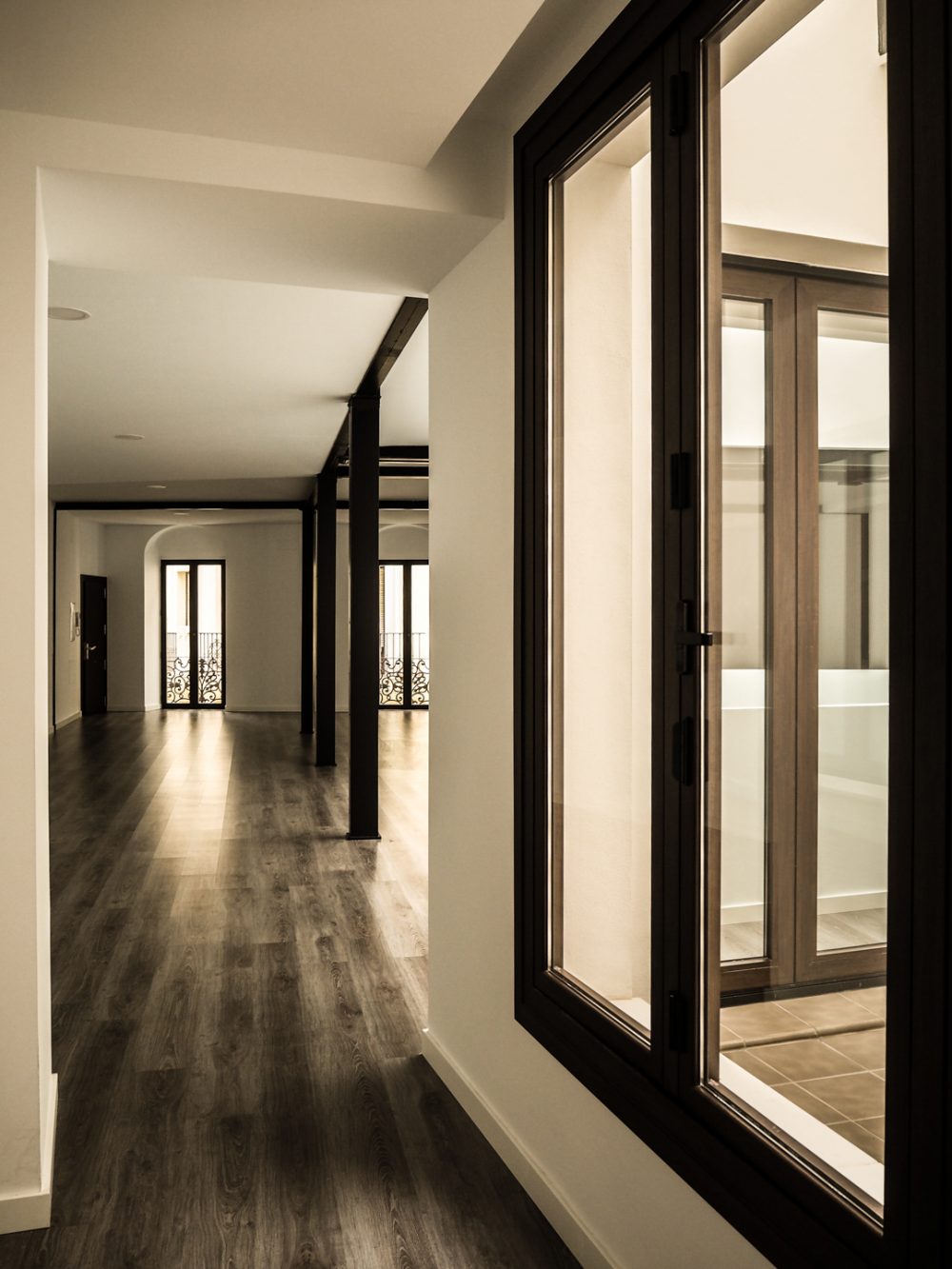 De esta forma, se conserva los elementos y huecos de la fachada, resaltados por un nuevo acabado de color blanco; se repara los elementos constructivos caracterÃsticos del interior del edificio, como los pilares de fundición y su cimentación, quedando en la propuesta totalmente vistos al configurar la planta de forma diáfana.