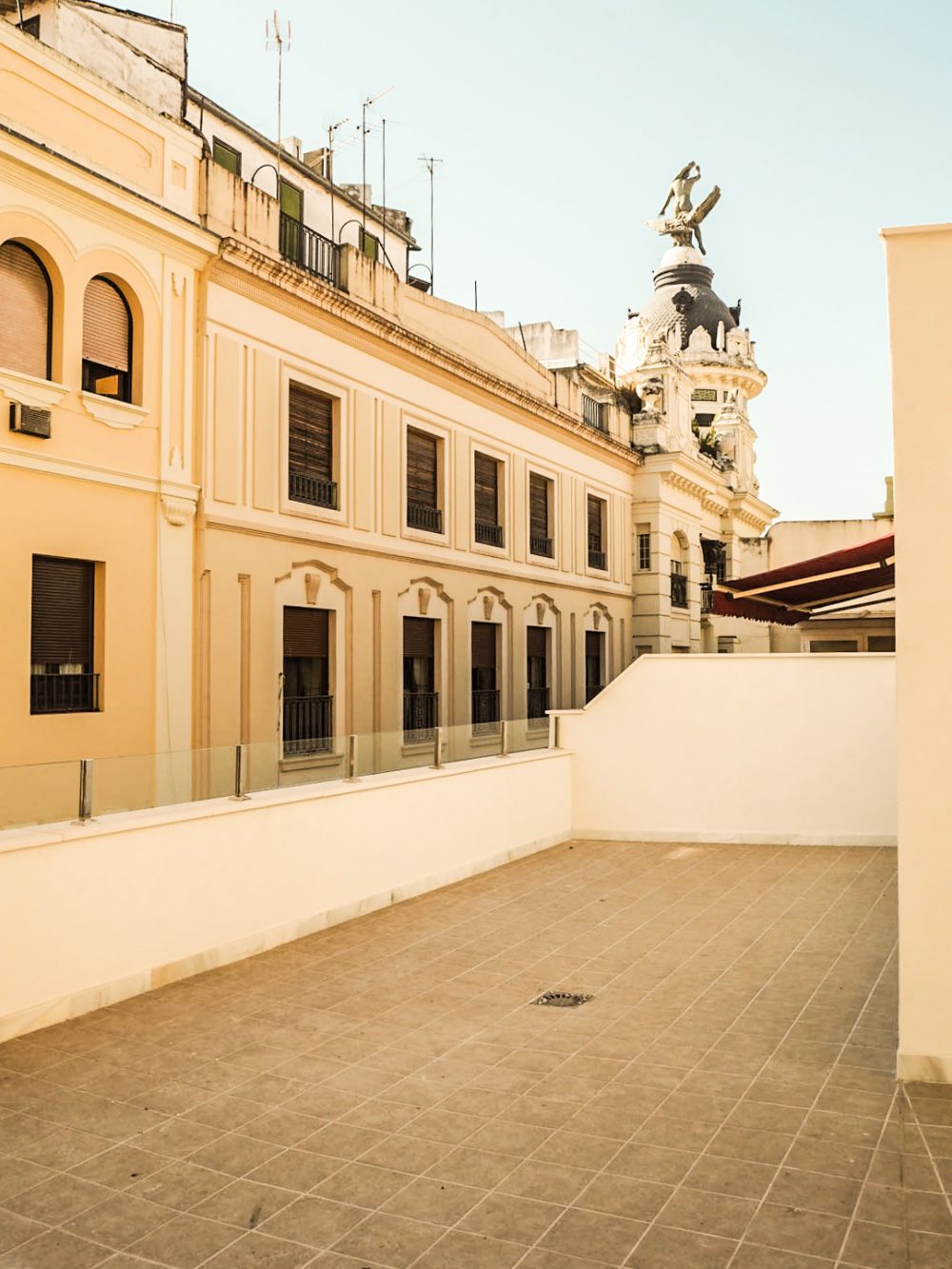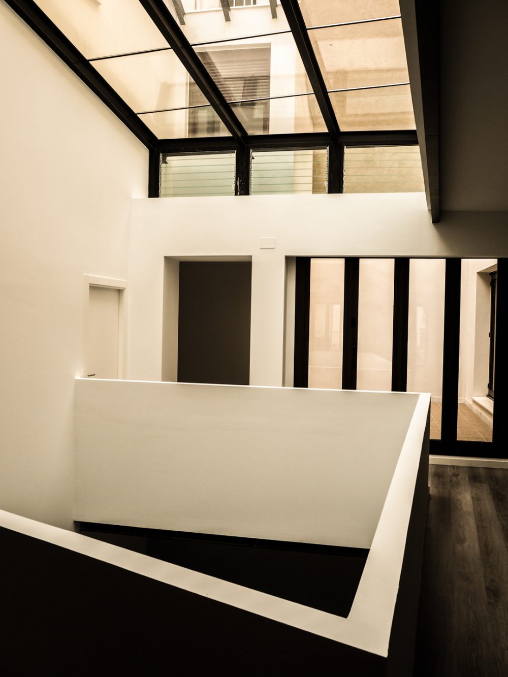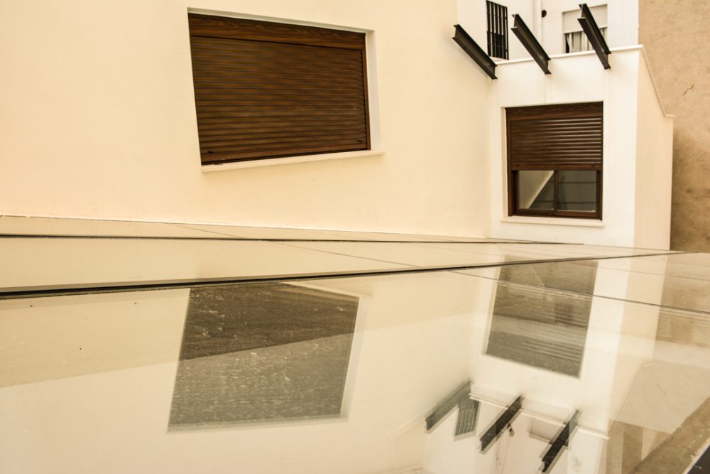 Además, de estos parámetros comunes para llevar a cabo la propuesta, se crean en el proyecto de ambos usos, tres espacios comunes a diferentes niveles. La vÃa pública, dónde se encuentra el acceso a ambos, la cubierta desde las que se percibe el centro de Córdoba, y un patio interior, el cual culmina en planta baja, como un paramento de vidrio, proporcionando luz cenital a dicha planta.