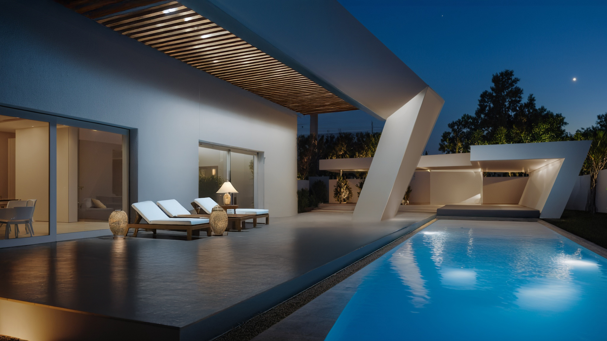Este proyecto de vivienda combina líneas modernas con una conexión fluida entre el interior y el exterior. La piscina, protagonista del espacio al aire libre, se integra con una zona de butacas estratégicamente ubicada para el descanso y la convivencia.
