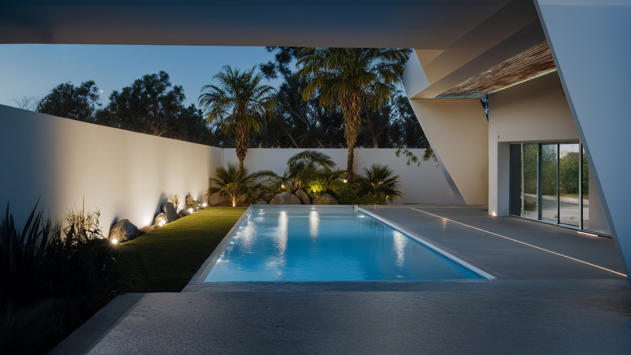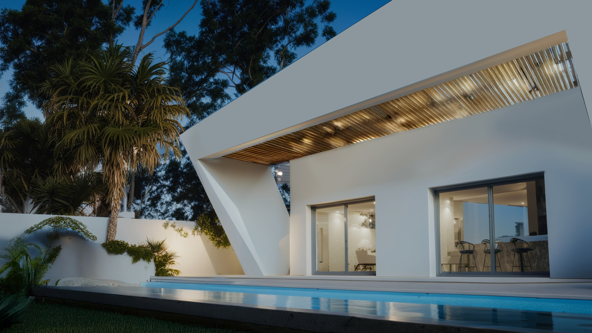 Este proyecto de vivienda combina líneas modernas con una conexión fluida entre el interior y el exterior. La piscina, protagonista del espacio al aire libre, se integra con una zona de butacas estratégicamente ubicada para el descanso y la convivencia.
